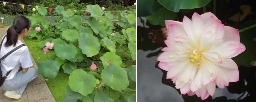 接著,隊員又前往荷園,此時正值南京中山植物園第二屆荷花新品種展,荷園里人來人往。各類品種的荷花爭奇斗艷。