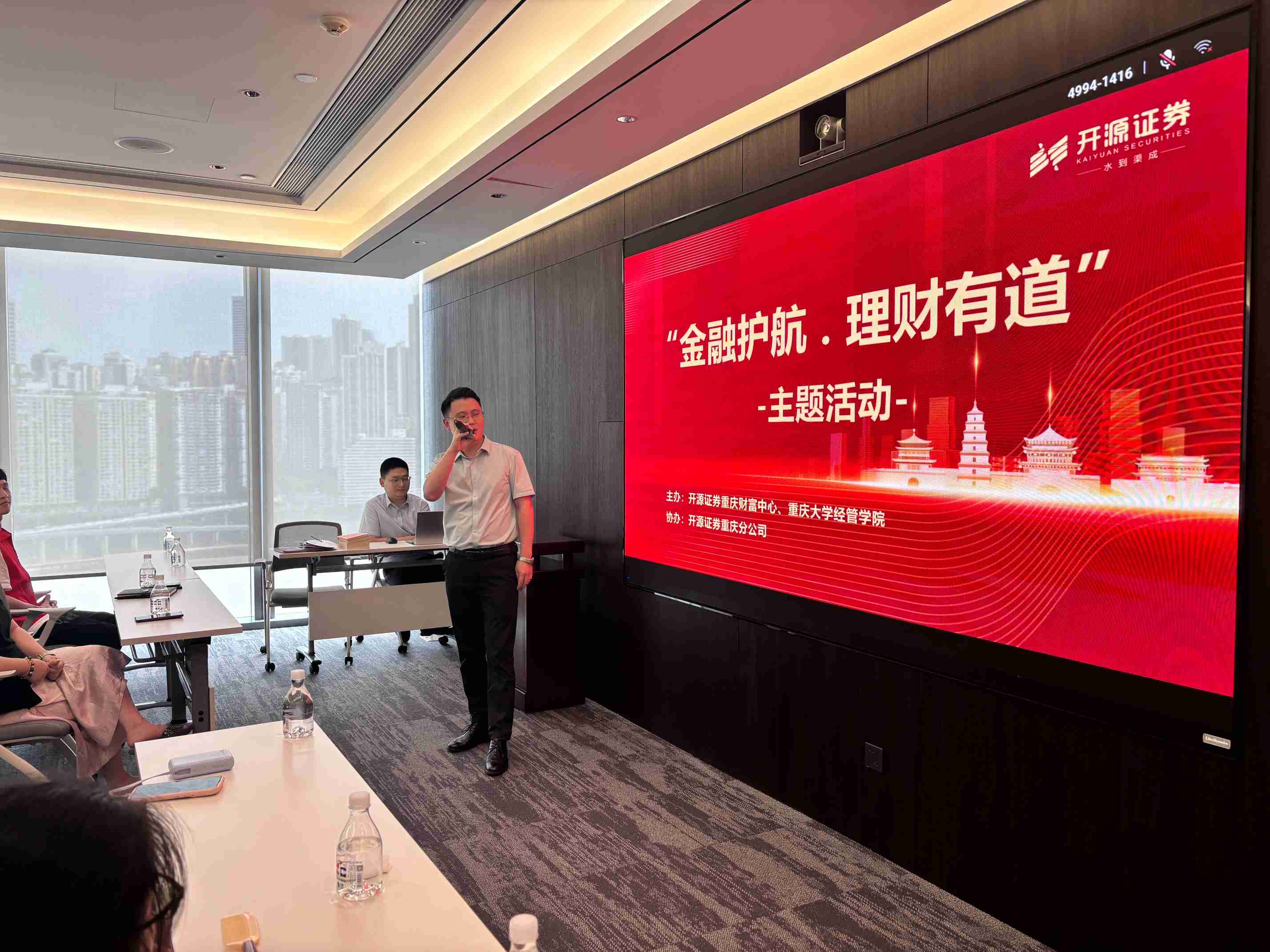 活動接近尾聲時,開源證券重慶分公司負(fù)責(zé)人圍繞 “理財小知識” 與 “職業(yè)規(guī)劃” 兩大板塊展開了精彩分享。在理財知識方面,他用通俗易懂的語言,結(jié)合具體的理財產(chǎn)品案例,詳細(xì)解讀了不同理財產(chǎn)品的風(fēng)險等級劃分標(biāo)準(zhǔn)以及選擇理財產(chǎn)品時應(yīng)遵循的邏輯,如根據(jù)自身風(fēng)險承受能力、投資期限等因素進(jìn)行選擇,提醒大家要樹立理性、穩(wěn)健的投資觀念。在職業(yè)規(guī)劃方面,負(fù)責(zé)人結(jié)合自己多年的從業(yè)經(jīng)歷,分享了在金融行業(yè)打拼的心得體會,為在場學(xué)生提供了金融行業(yè)職業(yè)發(fā)展的實用建議,如注重專業(yè)知識積累、提升溝通能力等,鼓勵青年學(xué)子們將所學(xué)的專業(yè)知識與社會實際需求緊密結(jié)合起來,在金融領(lǐng)域?qū)崿F(xiàn)自身價值。