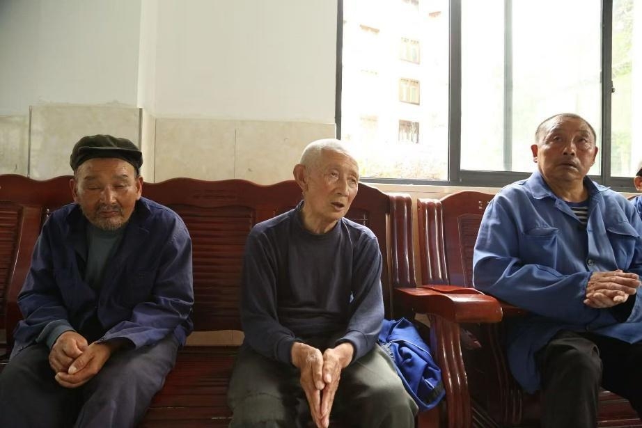 7月15日,重慶市石柱縣中益鄉華溪村,重慶外語外事學院“三下鄉”社會實踐團在敬老院聽涂光斌爺爺(左二)唱《三大紀律八項注意》。重慶外語外事學院西方語學院/供圖