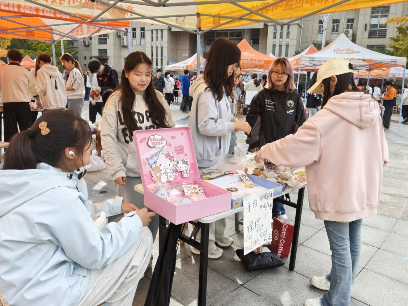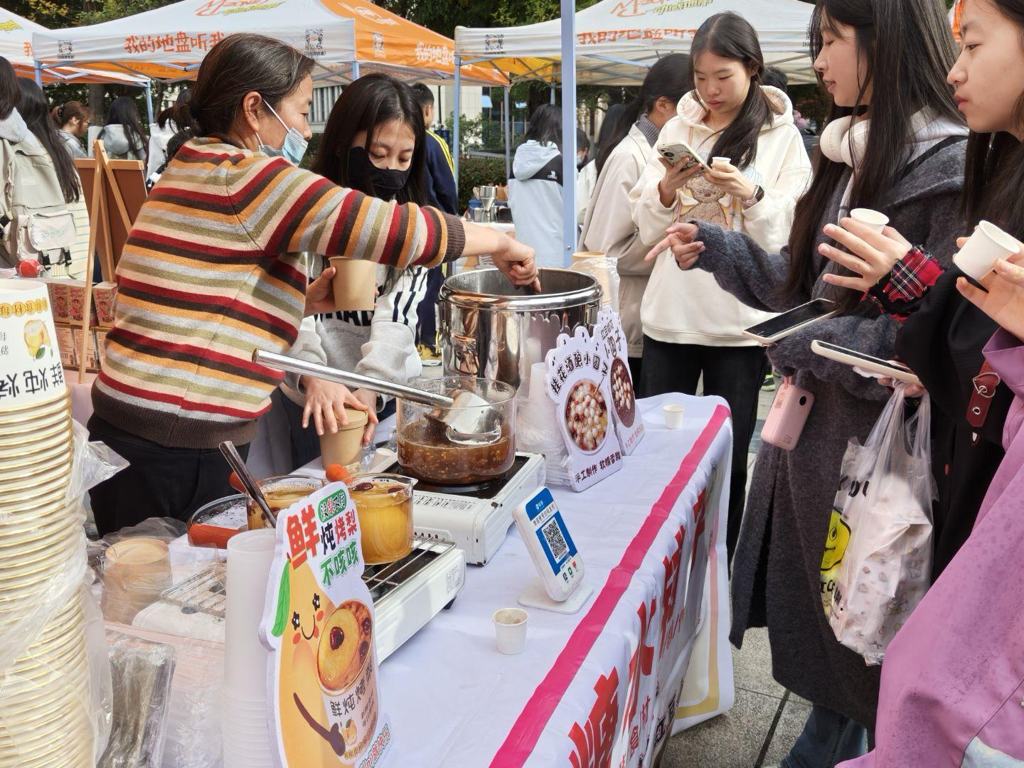 在這個充滿創意與活力的集市中我們看到了無數個發光的人們,每個攤位都像是一個發光的舞臺,展示著同學們的奇思妙想。從腦破突破天際的創意潮玩到純手工打造的精致好物還有讓人垂涎的街頭美食。集市上的每個角落都充滿了驚喜與靈感,同學們的傾情參與和活躍互動,為活動營造了熱烈而溫馨的氛圍。