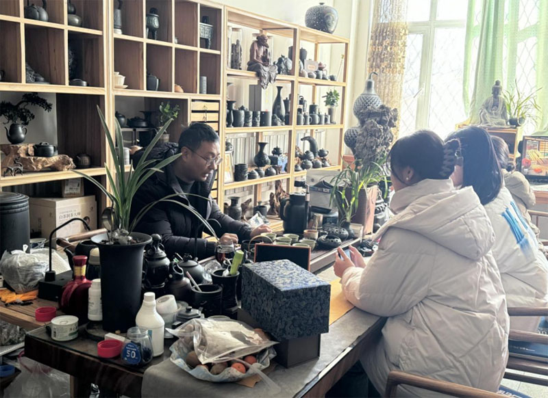 隨后,同學們與當地的黑陶匠人王師傅進行了深入的交流。王師傅分享了自己多年來從事黑陶制作的經歷和感悟,講述了他在傳承黑陶技藝過程中所面臨的困難和挑戰。盡管黑陶制作工藝復雜,傳承難度大,但王師傅始終堅守初心,致力于將這門古老的技藝傳承下去。