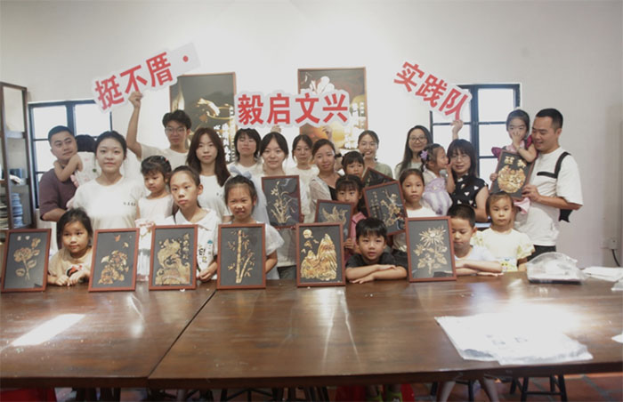 6月29日集美大學誠毅學院“挺不厝·毅啟文興”實踐隊走進黃厝村,面向親子家庭開展燒箔與漆扇技藝課程,并通過直播形式向線上觀眾同步展示非遺魅力,以“線下體驗+云端傳播”模式,讓傳統文化“破圈”觸達更多人群。