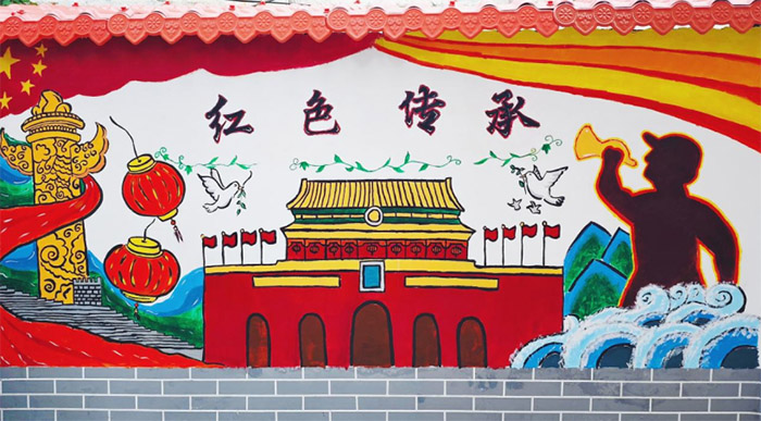 這幅以“紅色傳承”為主題的墻繪,通過豐富的視覺符號構建起歷史與現實的精神紐帶,洋溢著濃郁的愛國主義情懷。