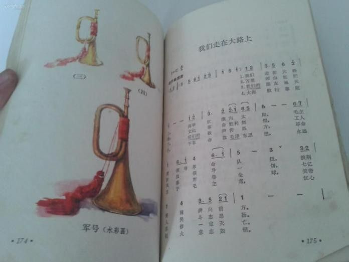圖為中小學教材印的紅色音樂歌曲《我們走在大路上》