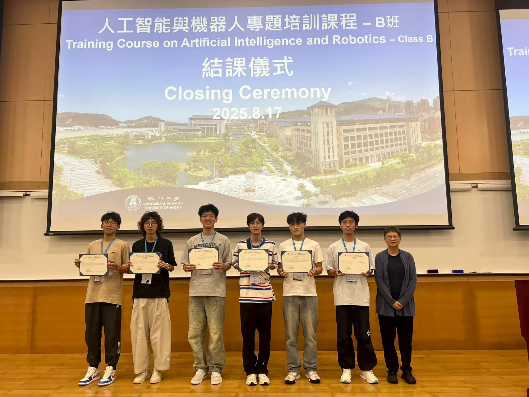 最后,經(jīng)評(píng)委老師審議與綜合評(píng)定,女生組和男生組分別以小組第一與第二的優(yōu)異成績(jī),贏得了澳門大學(xué)的高度認(rèn)可。這份肯定不僅是對(duì)同學(xué)們?cè)诳缥幕瘜W(xué)術(shù)環(huán)境中所展現(xiàn)出的專業(yè)素養(yǎng)與協(xié)作精神的最佳褒獎(jiǎng),更成為推動(dòng)他們持續(xù)成長(zhǎng)的動(dòng)力,激勵(lì)同學(xué)們不僅在人工智能與機(jī)器人等前沿科技領(lǐng)域繼續(xù)學(xué)習(xí),更以開闊視野、創(chuàng)新意識(shí)和綜合素養(yǎng),面向未來、迎接挑戰(zhàn),邁向全面發(fā)展的新臺(tái)階。