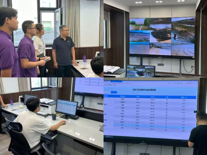 跟隨著技術(shù)人員的腳步,實踐隊參觀了集水情實時監(jiān)控、標準化機房與智慧平臺于一體的現(xiàn)代化中樞。巨大的電子屏幕上,渭河、涇河、北洛河、黃河等主要河流的站網(wǎng)分布、實時畫面及水位、流量等關(guān)鍵數(shù)據(jù)一目了然。水文中心汪總工介紹道:“通過引入數(shù)字孿生、大數(shù)據(jù)分析等先進技術(shù),我們構(gòu)建了全方位、全天候的精準監(jiān)測體系。如今,預(yù)警決策更加高效智能,為防洪減災(zāi)贏得了寶貴時間。”隊員們贊嘆不已,紛紛表示:“以往在課堂上聽聞‘智慧水利’,今日得見其實戰(zhàn)應(yīng)用,才真正體會到科技賦能帶來的巨大變革。”