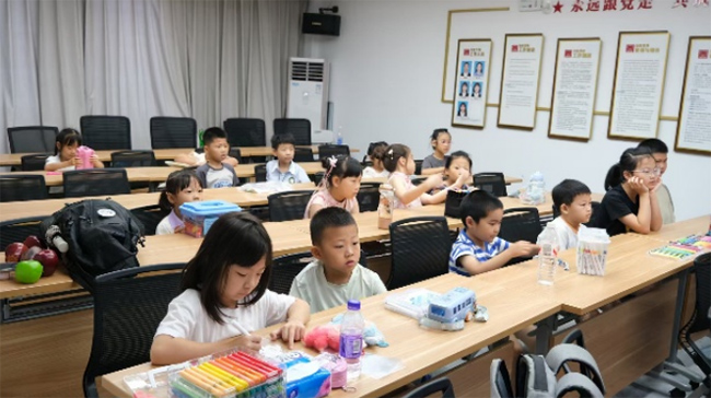 (圖為互動環節小朋友們認真制作“樹葉”。瞿雨璇 供圖)