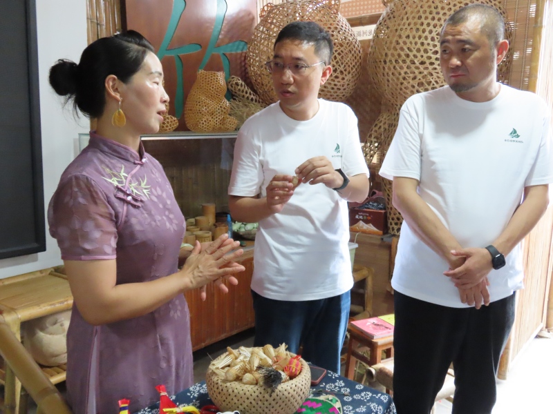 研。隊員們學習周公山竹編的歷史與工藝,從砍竹、破篾(刮青)、修篾、染篾到編織、整形,深入了解100余道手工環節;詳細了解了“公司+合作社+農戶”的運營模式,即公司承接訂單、合作社提供原料與技術指導、農戶居家生產,該模式已帶動6000余人次培訓,產品遠銷國內外,2023年還接到80萬元大額訂單,同時也見證了政策扶持下非遺工坊的建設與發展。