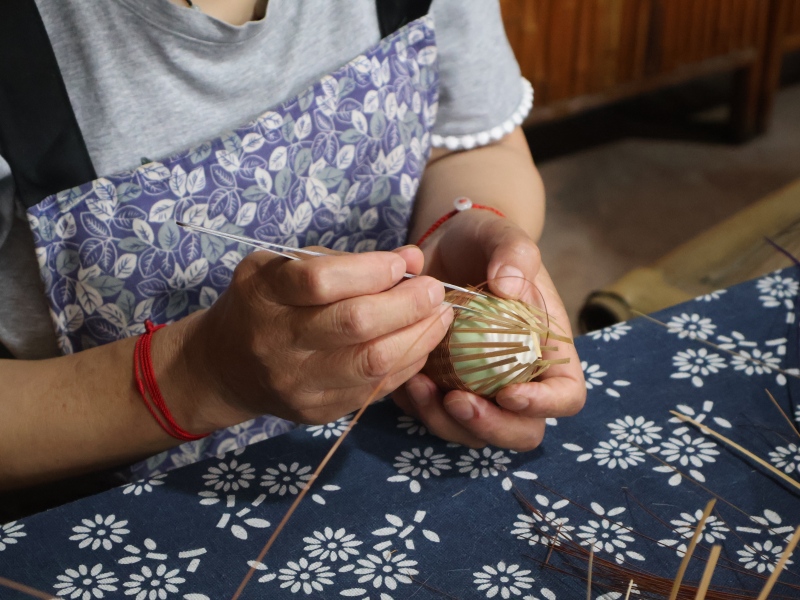 圖:竹編藝人正在進行編織