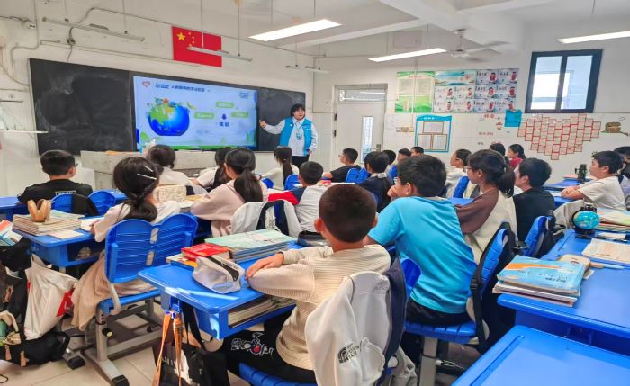 圖為團隊成員在教室與同學們問答互動的情況。趙佳欣 供圖