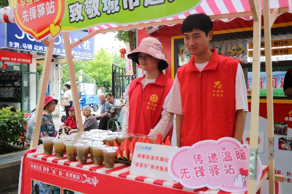 滿懷熱情的安師大學(xué)子們在社區(qū)的廣場上搭起了先鋒驛站,擺上了解暑的西瓜和綠豆湯,成了社區(qū)里不一樣的一道風(fēng)景。志愿者們的熱情和活力吸引了許多的老年人,他們便笑著迎上去遞過西瓜和綠豆湯,將清涼送進(jìn)長者的手中,將溫暖送進(jìn)長者的心里。安師大學(xué)子們不僅在先鋒驛站中為大家送清涼,他們更是走出廣場,走近社區(qū)街道,為更多的老年人送去溫暖和清涼,用自己的雙手傳遞愛心,用自己的雙腳走近他人。