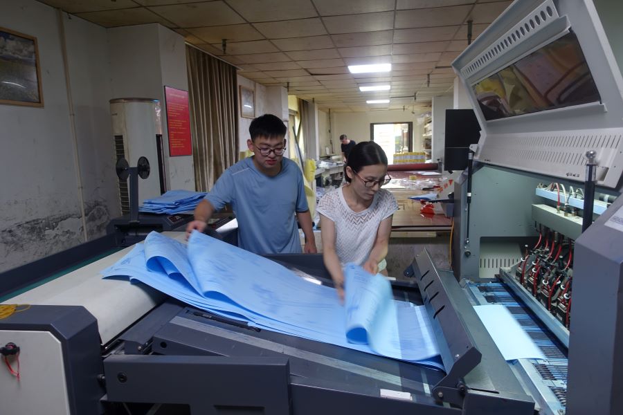 走進公司后,在工作人員的幫助下,實踐團隊開始了解公司的布局和一些加工設備,項目負責人余新談到“圖文設計與編輯需要與當下市場相結合,需要相關的專業知識”,她還談到“產業效率的提升離不開科技創新的賦能”,通過余新的講解,團隊成員對產業、科技和市場之間的關系有了更深刻的理解。