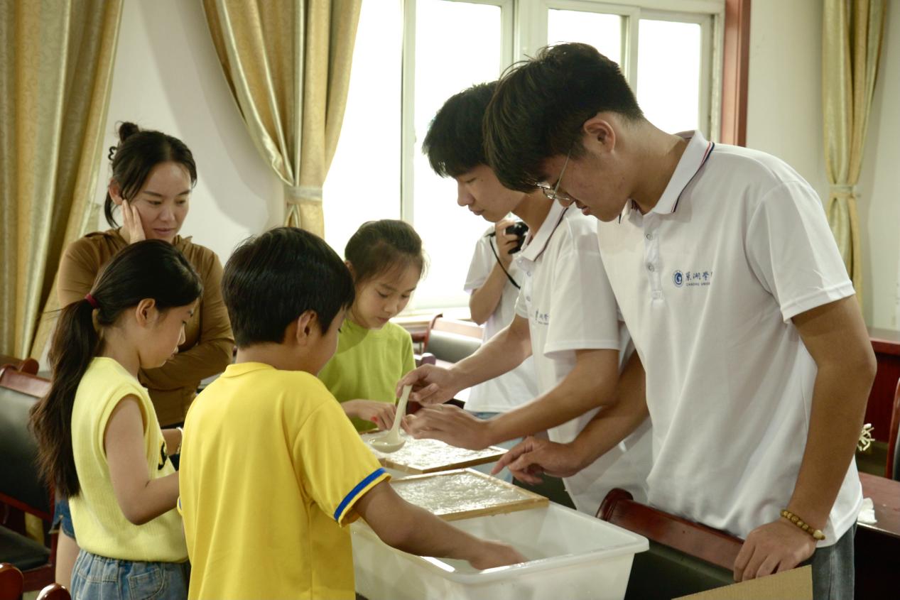 圖為團(tuán)隊(duì)成員教小朋友做紙箋 陶心雨攝