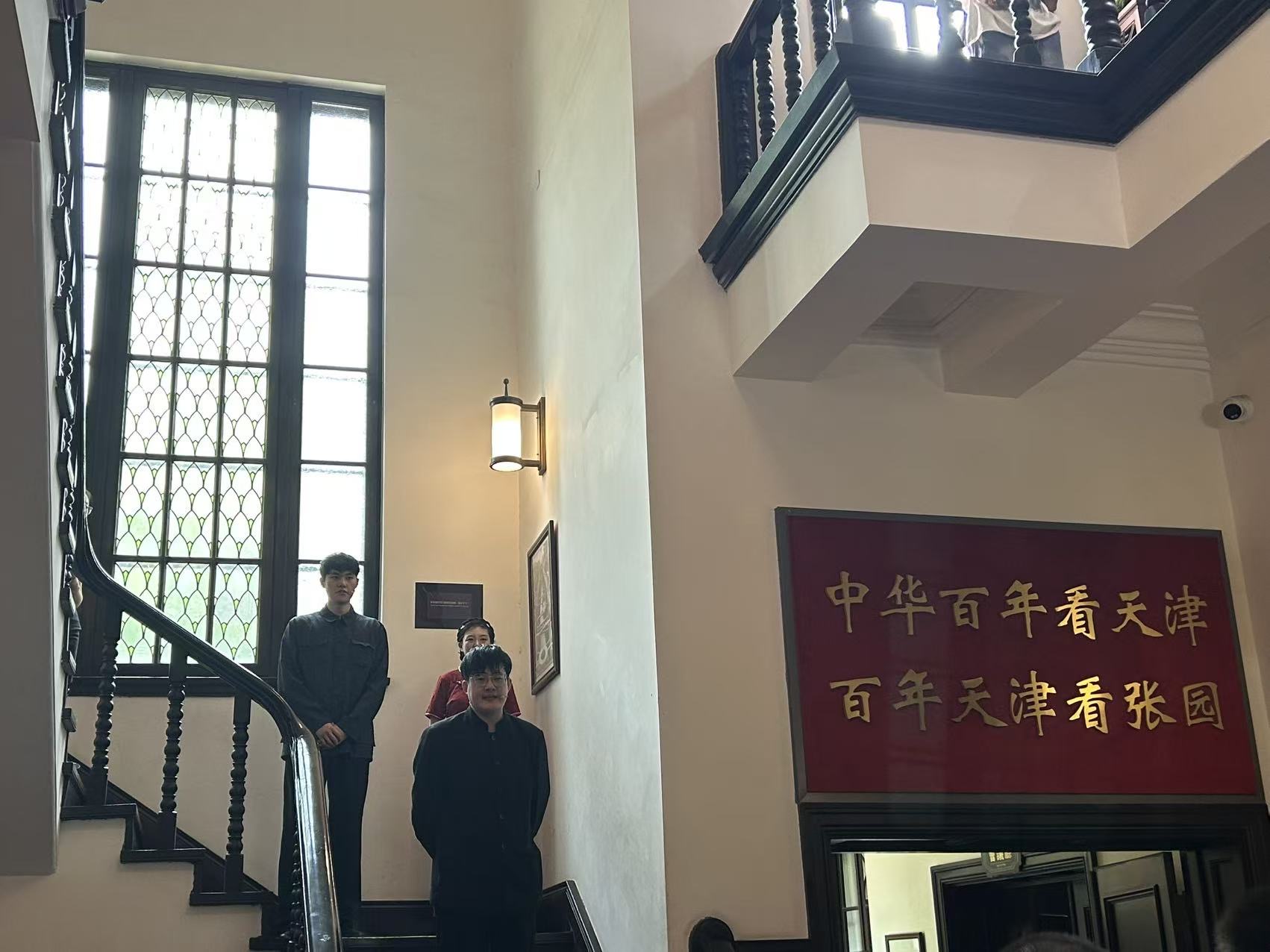 懷著崇高的敬意,實踐隊員們踏上了前往張園的行程。坐落于鞍山道的張園,既是清末民初諸多重要事件的見證地,亦是當下沉浸式黨課的熱門體驗場所。恰見一群精神矍鑠的老者面向黨旗莊嚴宣誓,其鏗鏘誓言激蕩人心,盡顯對信仰的執著。這座磚木結構的小樓,承載著厚重的歷史記憶:它曾回蕩著孫中山先生“天下為公”的壯志吶喊,也銘刻下溥儀淪為偽滿傀儡的屈辱過往。轉角展柜中,孫中山先生離津赴京時與于方舟、江浩等志士的合影,更將那段風云歲月具象化。張園的濃厚紅色氛圍,讓隊員們對紅色基因的內涵有了更為深切的體悟。作為新時代的青年,當以行動傳承紅色血脈,將其融入日常言行,在踐行中為中華民族偉大復興的中國夢添磚加瓦,這既是使命所在,亦是青年擔當的生動詮釋。