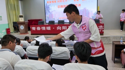 “星益”圓夢服務隊成員在泉州海洋職業學院黨委學生工作部辦公室副主任林淑婷與資助與捐贈中心副主任溫寶林老師的帶領下,進行“星益”圓夢計劃資助政策進班宣講。為確保不讓一個學生因貧失學,通過資助宣講,讓家庭經濟困難的學生了解政策,通過學生資助政策得到幫助,熟悉如何利用資助政策,解除學習成長中的后顧之憂。同時,設立微心愿活動,去傾聽學生心愿,完成他們所需,小小微心愿,濃濃深情誼。