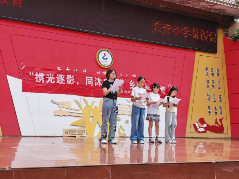 除了日常課堂,志愿者們還組織了一系列特色活動:趣味運動會上,孩子們在接力跑、拔河等項目中揮灑汗水,學會了團隊協作;“感恩與成長”主題班會上,大家分享心里話,懂得了珍惜與感恩;閉營前的文藝匯演中,孩子們自信地展示著夏令營學到的才藝,歌聲、笑聲回蕩在校園,展現出蓬勃的朝氣。