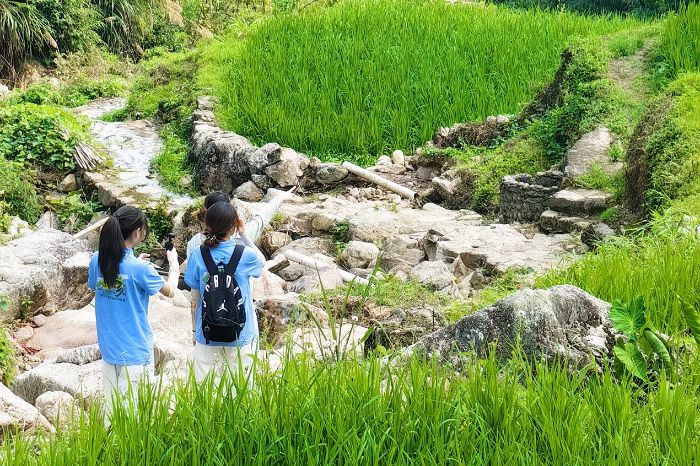 推動鄉村特色產業與傳統文化的融合發展,是激發鄉村振興內生動力的關鍵。突擊隊先后考察了桂坑尾村、過山瑤茶園及茶葉加工基地。在桂坑尾村,團隊觀察了有機水稻梯田,記錄了影響水稻生長的環境要素。在過山瑤茶園,隊員們深入230畝茶葉種植區,測量海拔、記錄氣象數據,了解到白茶采用原生態種植模式,不打農藥、不施化肥,通過“秸稈還田”補充土壤有機質,確保茶葉自然生長。