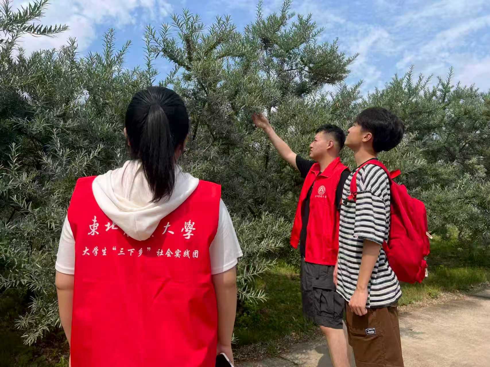 走出展覽館,實踐團來到沙棘生產(chǎn)基地。漫山沙棘樹叢間,青綠色果實如綠寶石綴滿枝頭,尚未成熟卻已顯生機。農(nóng)技員說:“現(xiàn)在控水控肥是關(guān)鍵,綠色果子得經(jīng)住夏日考驗。”雖未見橙黃豐收景,我們卻讀懂了“三分種七分管”的門道,更體會到鄉(xiāng)村振興需扎根土地的耐心。