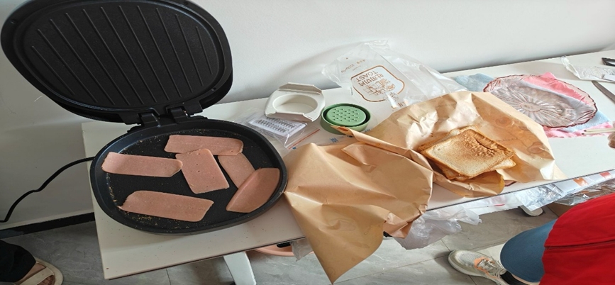 太極活動結束后,志愿者們與服務中心工作人員迅速投入三明治制作的籌備工作。大家分工明確:有人仔細清洗生菜、黃瓜等新鮮蔬菜,確保食材潔凈;有人有序整理全麥面包、低脂火腿等原料,按類別擺放整齊;還有人調試制作工具,為接下來的互動環節做好充分準備。陽光透過窗戶灑在操作臺上,各色食材錯落有致,營造出溫馨的活動氛圍。