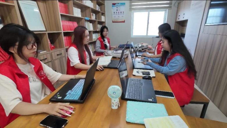 在大坪村研學中心,社會實踐隊觀看了大坪村宣傳介紹影片,詳細了解了大坪村的發展歷史、文化底蘊以及鄉村產業發展情況。