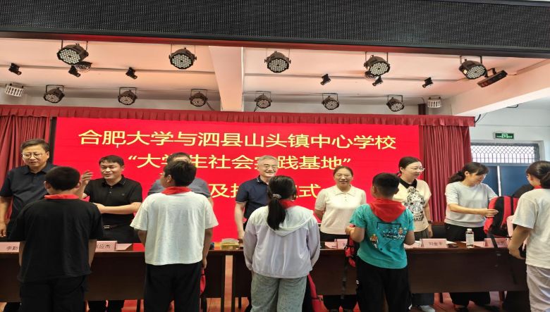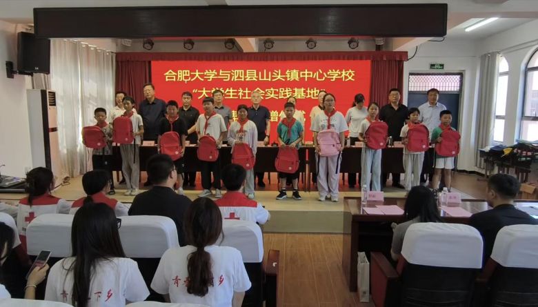 活動現場,捐贈儀式莊重而溫暖,合肥大學向當地捐贈了一些書包、籃球等物資,為孩子們帶來知識的滋養。隨后,“合肥大學生社會實踐基地”正式授牌,這標志著合肥大學與泗縣在實踐育人、校地合作方面開啟了新的篇章。