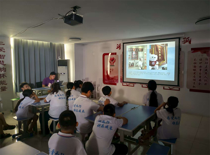 在進行系列參觀、調研活動之后,“沭火新光”宣講團成員帶著實踐收獲與理論思考,將實踐成果轉化為面向不同群體的宣講實踐。7月8日上午,團隊成員與小樹林支教團攜手聯動,走進臨沂蘭山區向支教團的少年們宣講和分享團隊在此次實踐活動中的感受與成果。