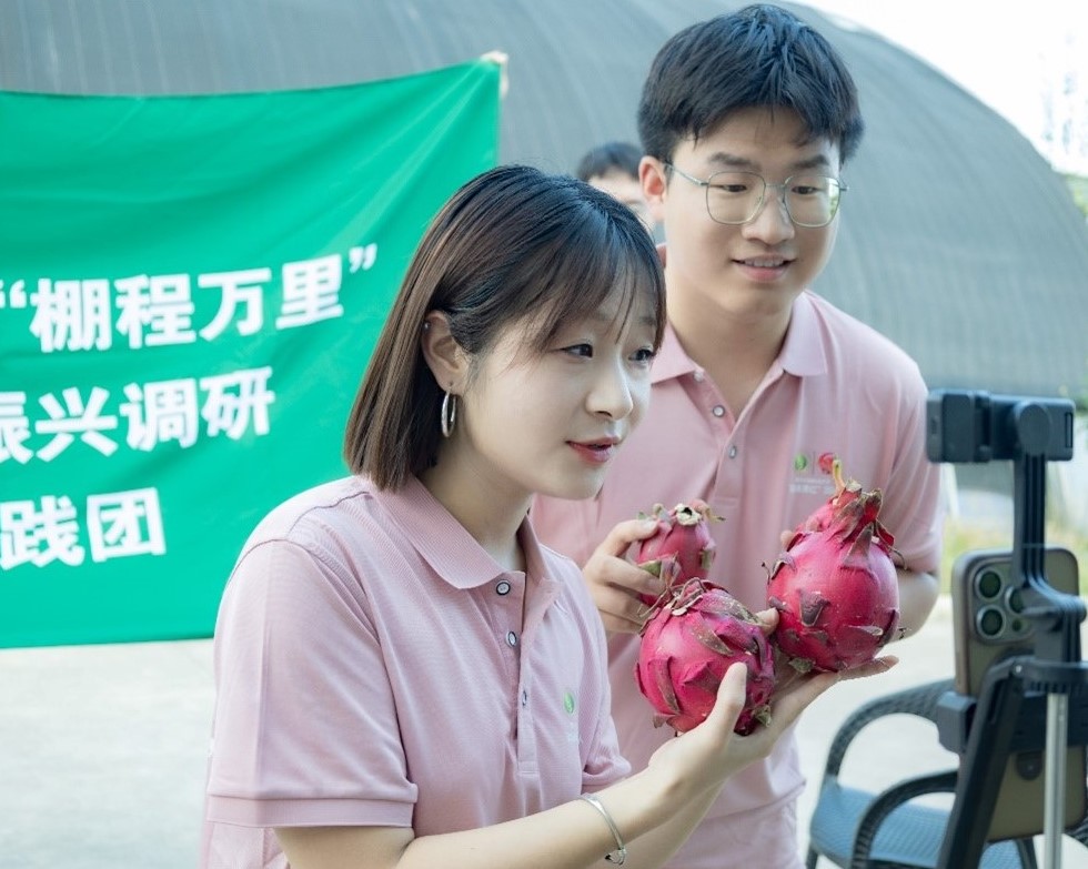 7月24日至30日,西北農林科技大學園藝學院“棚程萬里”鄉村振興調研實踐團的隊員們,將社會實踐的課堂搬進了楊凌區青皮她園火龍果種植基地的直播間。實踐隊員化身“新農人”主播,為基地的特色火龍果新品種傾情代言,用青春力量拓展數字銷路,以實際行動賦能鄉村產業振興。