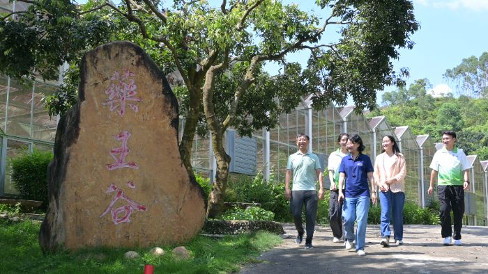 藥王谷踞羅陽之北,象頭山之南,藏于青巒間,是博羅南藥的名簽。在華南師范大學國際商學院黨總支書記張奕華、產業學院院長左小明、團委書記張雨的帶領下,實踐團探訪了惠州博羅象山藥王谷。