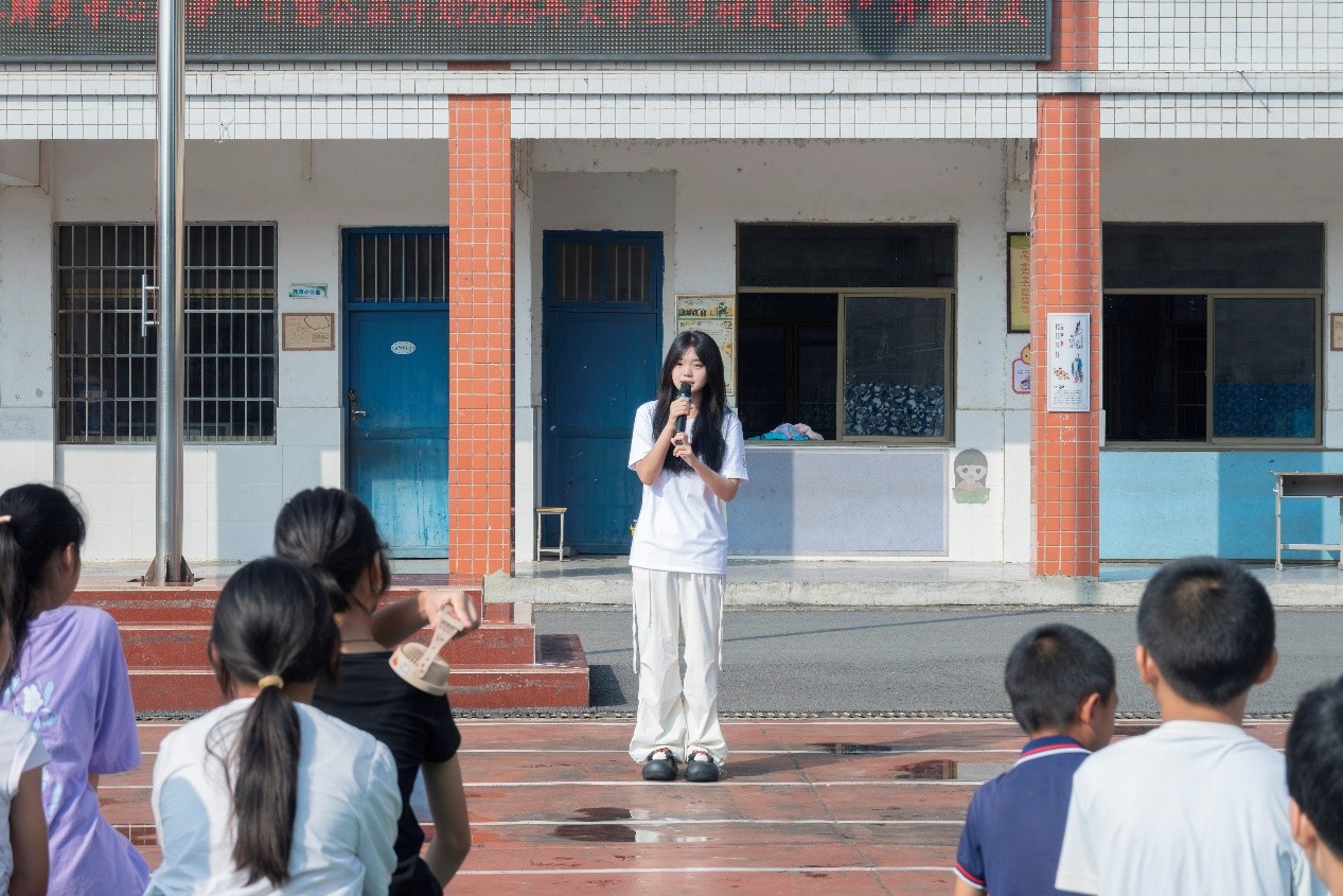 上午時段,開營儀式按流程進行。石珺主持開營儀式,志愿者依次進行自我介紹,展示團隊風貌與服務熱情;校方校長出席并講話,對支教隊表示歡迎,強調活動對學生成長的意義,鼓勵師生珍惜互動機會。隨后,為促進學生快速融入,李秉澤帶領一營學生開展“大風吹”等破冰活動,其余志愿者分組引導,有效消除陌生感,營造積極氛圍。