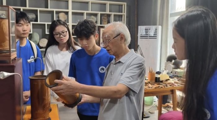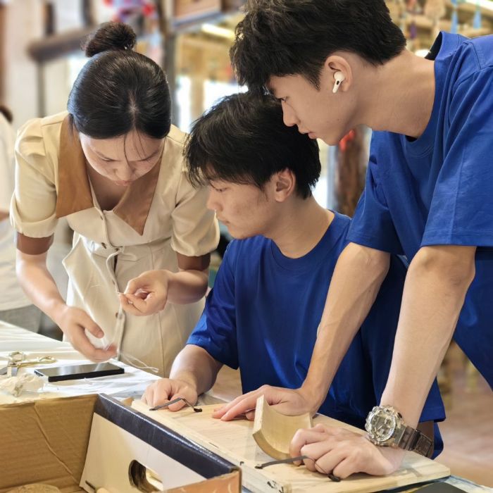 當實踐觸及"傳承如何可持續"的深層思考時,非遺傳承人的經驗為團隊提供了答案。拜訪國家級竹簧傳承人何華一先生,其"非遺要活在當下"的理念與實踐極具啟示:他將竹簧從傳統擺件拓展至現代壁畫、家居裝飾,用設計創新讓古老技藝融入生活;其女探索的"非遺 + 文創"、"非遺 + 研學"路徑,則展現了傳統與市場結合的可能。何家父女的實踐印證了傳承需以創新為橋,讓文化在時代語境中找到新坐標,為團隊的傳承思考打開了新視野。
