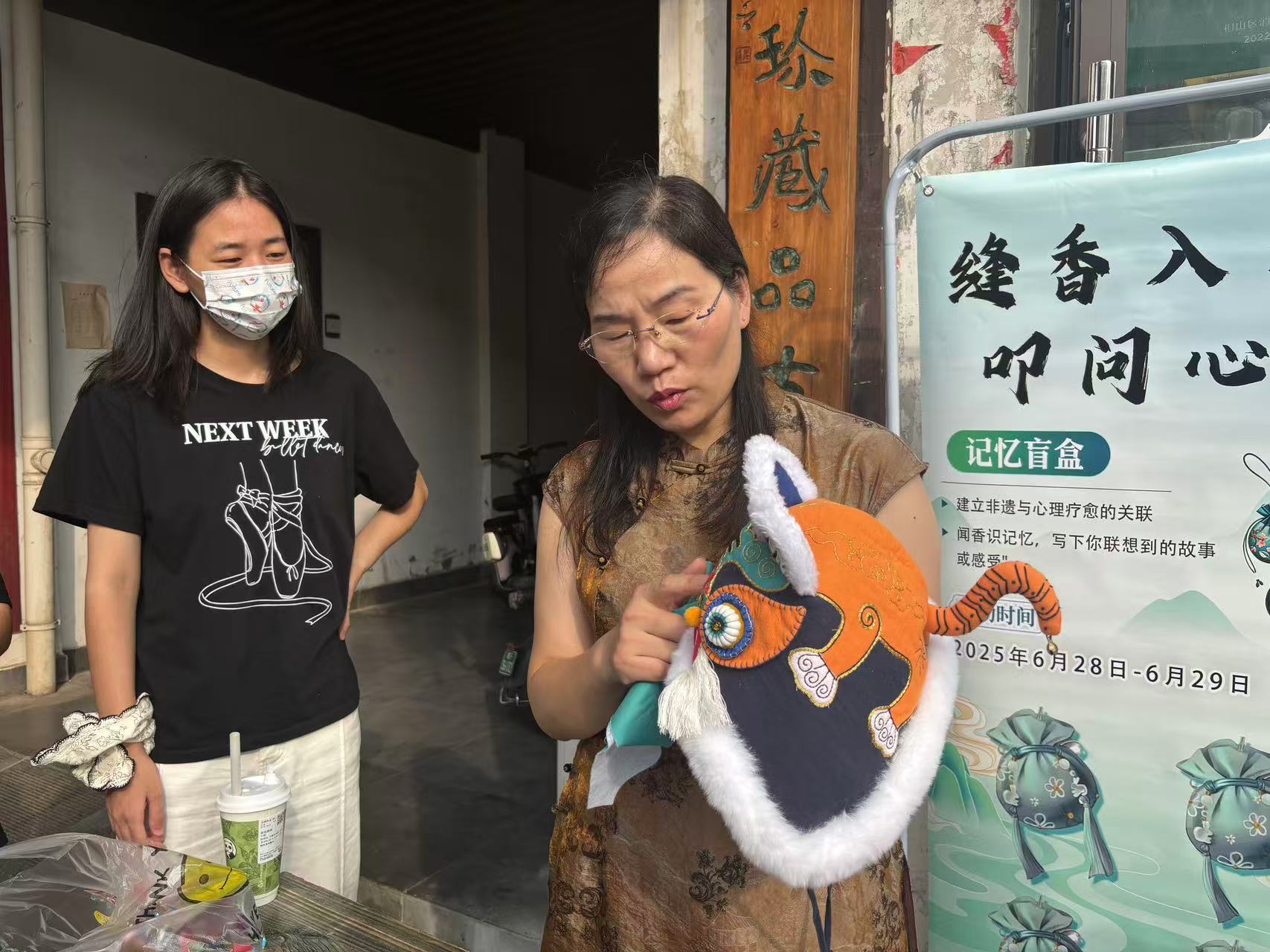 9月初,實踐團前往隋唐古鎮,參與楊家香包、虎頭帽非遺傳承人專題分享會。會上,傳承人結合自身從業經歷與群眾反饋,詳細講述兩項非遺對情緒調節、文化認同的實際影響:“很多體驗者說,穿針引線做香包時,心里的煩躁會慢慢平復;家長給孩子戴虎頭帽時,會主動了解背后的吉祥寓意,這讓傳統文化的根扎得更牢。”