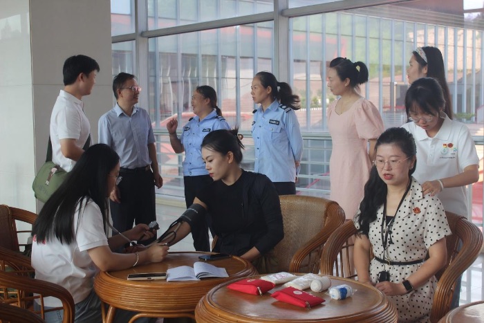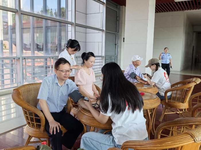 實(shí)踐隊(duì)在博物館公共區(qū)域設(shè)置了臨時(shí)義診點(diǎn),為前來(lái)參觀的游客和當(dāng)?shù)鼐用裉峁┗A(chǔ)健康檢查與服務(wù)。隊(duì)員們默契配合,熟練操作血壓計(jì)、聽(tīng)診器等器械,耐心為大家進(jìn)行檢測(cè)。現(xiàn)場(chǎng)群眾反應(yīng)積極,有人關(guān)切詢問(wèn)健康狀況,有人從容接受檢查,也有不少人在得知結(jié)果后進(jìn)一步咨詢健康建議。通過(guò)與群眾面對(duì)面交流,隊(duì)員們切實(shí)感受到大眾對(duì)健康的重視與需求,也更加堅(jiān)定了投身醫(yī)療事業(yè)的信念。