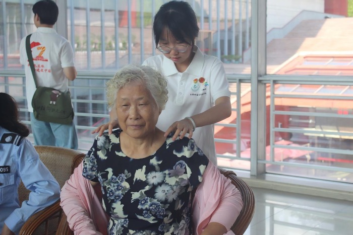 針對(duì)現(xiàn)代人常見(jiàn)的健康問(wèn)題,實(shí)踐隊(duì)還開(kāi)展了實(shí)用醫(yī)學(xué)知識(shí)宣講。在穴位按摩教學(xué)環(huán)節(jié),隊(duì)員詳細(xì)講解并演示了緩解疲勞的常用穴位及按摩技巧,邀請(qǐng)觀眾現(xiàn)場(chǎng)體驗(yàn),氣氛輕松活躍。隨后進(jìn)行的創(chuàng)傷包扎技能教學(xué)中,團(tuán)隊(duì)重點(diǎn)介紹了環(huán)形包扎法、螺旋包扎法的適用場(chǎng)景與操作步驟,并對(duì)不同打結(jié)方式進(jìn)行比較說(shuō)明,幫助觀眾掌握基礎(chǔ)急救技能,獲得了廣泛好評(píng)。