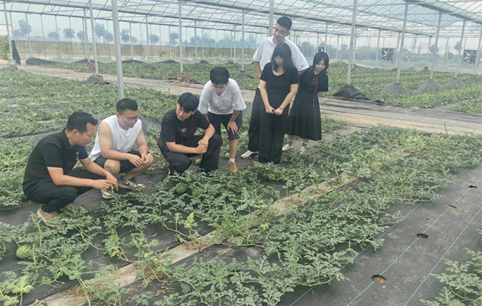 習近平總書記指出,“農業出路在現代化,農業現代化關鍵在科技進步”。在鄭董事長的帶領下,實踐團走進現代化種植基地,鄭董事長介紹,基地不僅引種優質瓜果豐富市場品類,更積極探索洪山菜薹與瓜類作物的輪作及生態共生技術體系,正在計劃引進水肥一體化智能灌溉、環境實時監測等現代農業技術應用,為實現洪山菜薹精細化、周年化生產提供核心支撐。